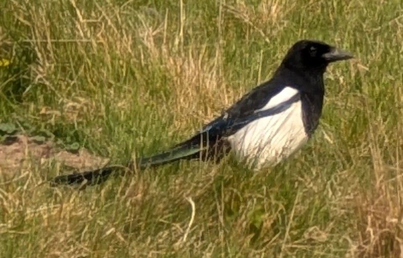I began to walk around the outskirts of the recreation ground, where I noticed a black-and-white bird feeding on the grass. At first, I thought it was a magpie, but I quickly realised it was too big to be one and took a close-up photograph. Later, Google Lens identified it as an oystercatcher. Apparently, it is quite common to see them foraging on green areas during the breeding season.