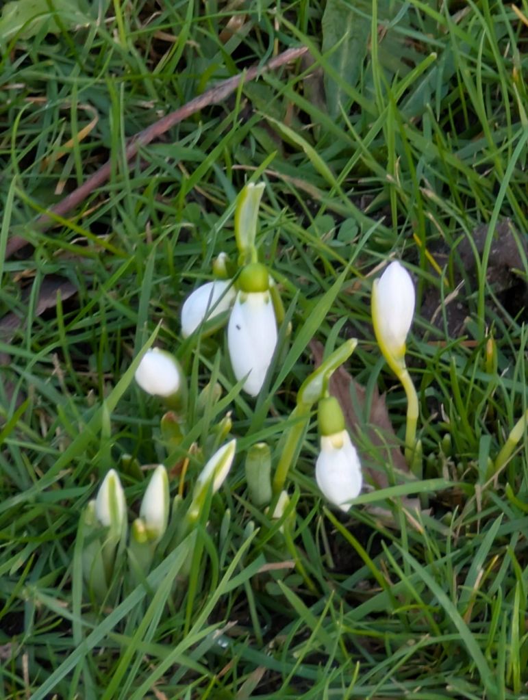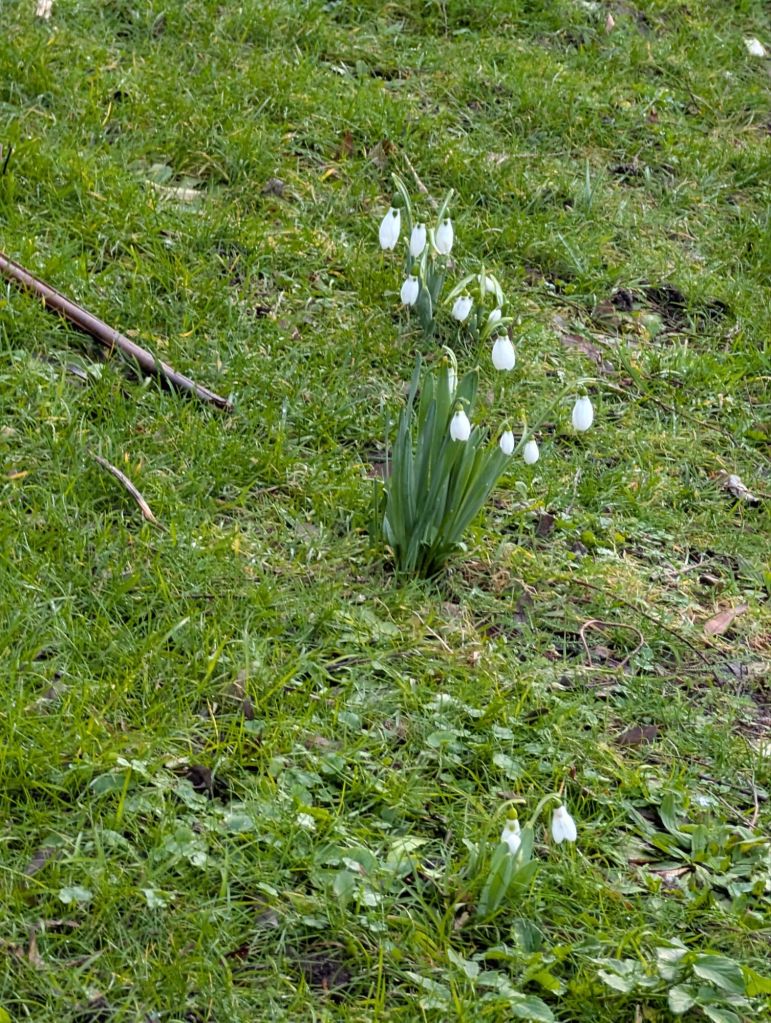 It was lovely to see a line of early, sparkling white snowdrops in flower leading to the cemetery gates. I also noticed that the buds on the daffodils along the cemetery road are ready to spring into bloom at any moment.