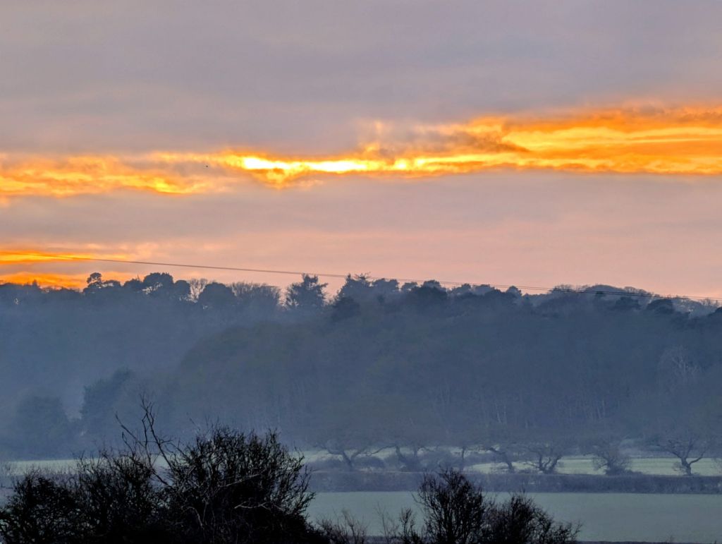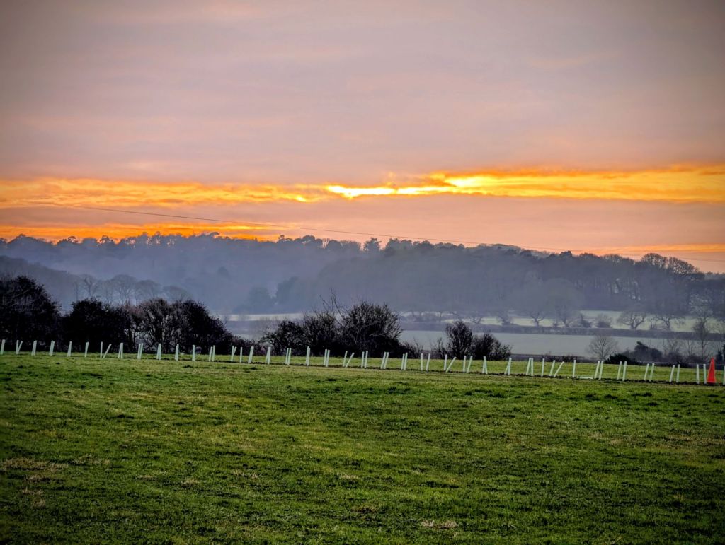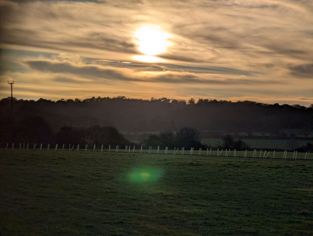 Today I had a lovely chat with a lady at Cows Lane. I finally learned that her dog is a Jack Russell, not a Bull Terrier as I had previously thought based on its head shape! I also managed to capture a couple of beautiful photographs of the sunset over the farmer’s field adjoining the cemetery.