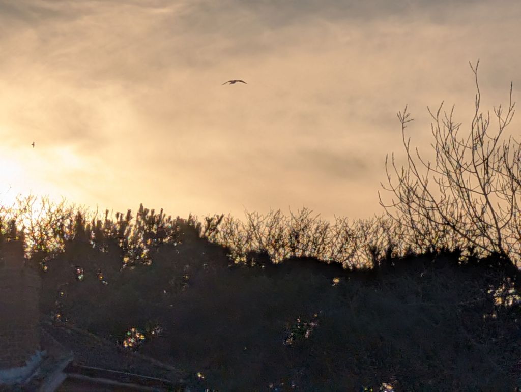 A large herring gull was running quickly across the golf course as I walked past. Finally, I spotted a wood pigeon perched in a silver birch tree, where the leafless branches revealed a nest from last year’s breeding season.
