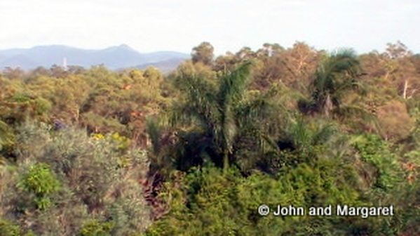 High Palm trees mingled with Eucalyptus trees in the woodland in the middle distance and this was backed up by a range of mountains on the distant horizon, often shrouded in cloud and mist.