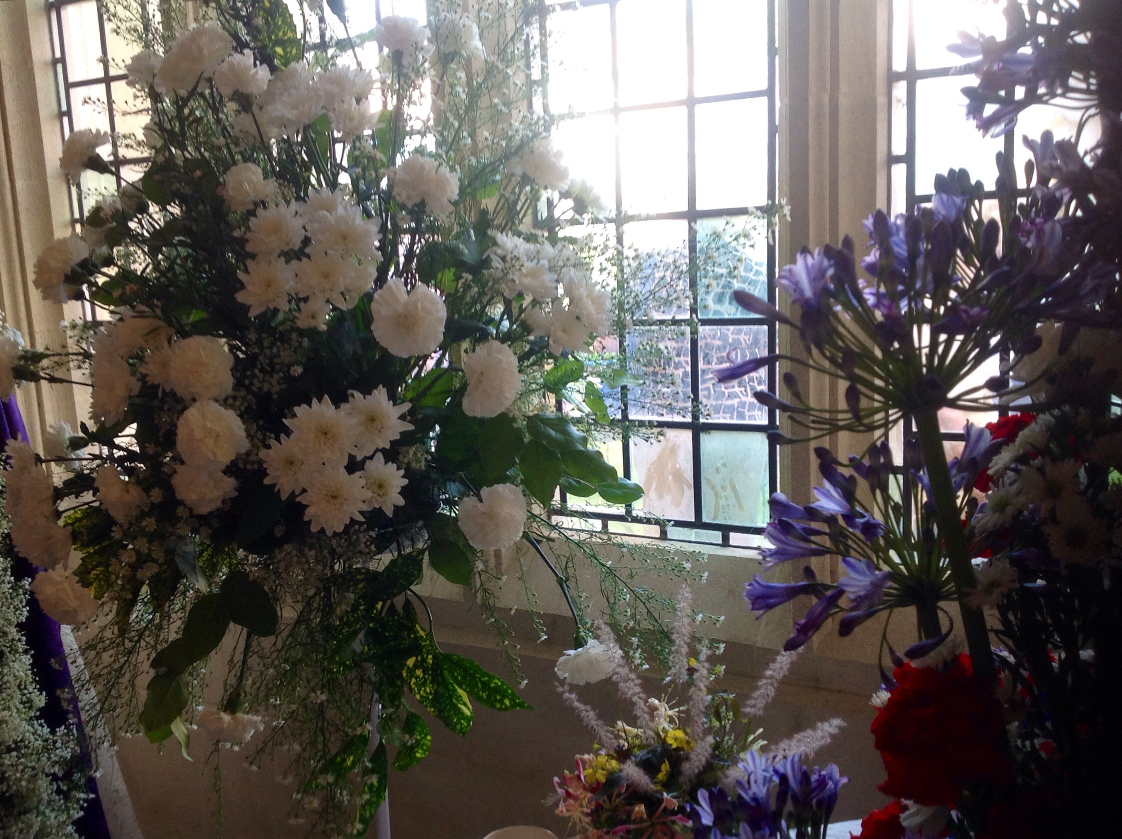 White Chrysanthemums and Blue Agapanthus