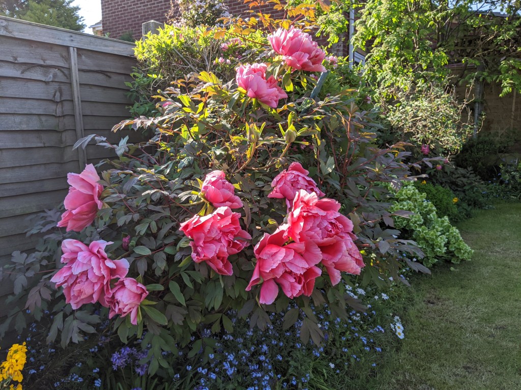 Next to make an impressive appearance is the incredible Tree Peony. A quite unassuming shrub for most of the year, our Tree Peony quietly merges into the background of the borders. We actually have two of these wonderful shrubs in the garden. One of the two is situated in a shady corner and doesn’t flower as prolifically as the other. In late March and early April large buds begin to appear at the ends of the branches. Then, with a burst of shocking pink the buds swell and reveal huge, showy, impressive blooms. Then after about ten days these lovely blooms complete their cycle of life, wither, and fall from the shrub. Another source of wonder to the thinking man.