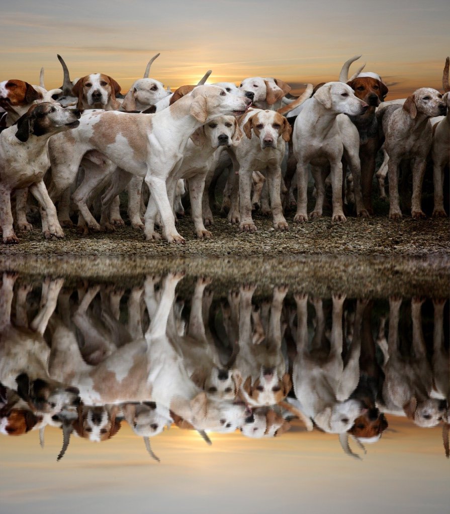 Just the sound of the hounds growling, Snarling and fighting for flesh. I hide here frozen, petrified with fear Pain and shock as the hunters pass. With Ben chained, captured and beaten. Bloodstained and shaking with fear The hounds have a stag, half-eaten. I make my escape and get clear.l