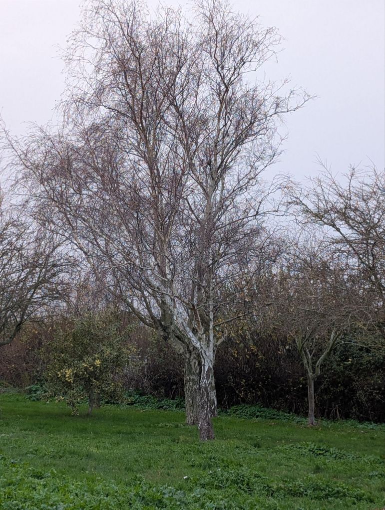 Bats silently hunt over the branches arch A ghostly figure in the dead of night Wild wind strips the leaves from a silver birch.