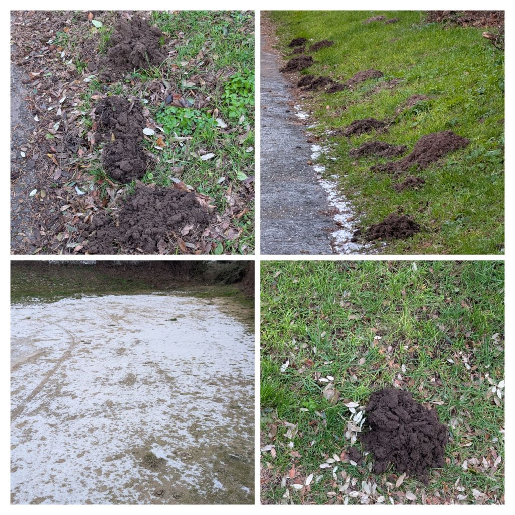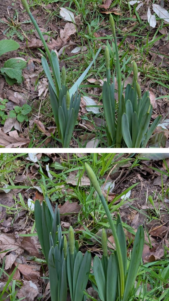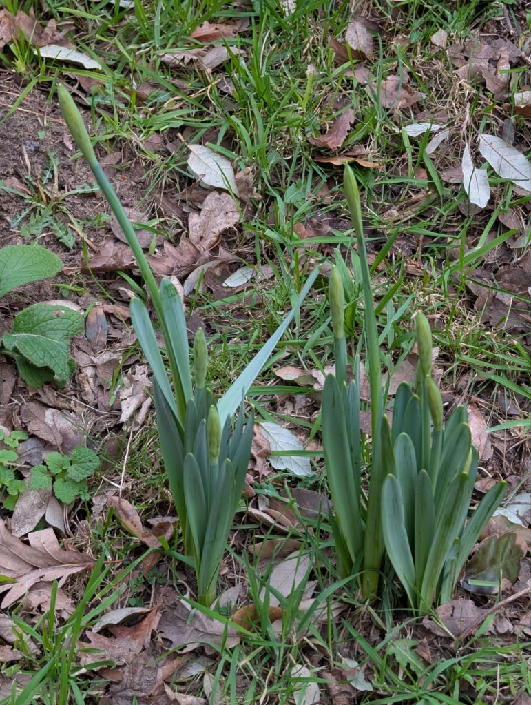 Leaving the cemetery, I began walking along the cemetery road, where I photographed some early daffodil flower buds and leaves pushing through the soil on the borders. I walked a little further and simply had to take a picture of a row of fresh, black, soil-topped molehills.
