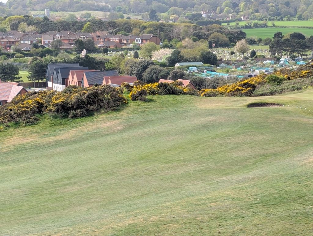 Margaret dropped me off at the golf club gates, and I began to walk around the outskirts of the golf course. Several feral pigeons were lined up on the rooftop of the house where the owners consistently feed the birds. A couple passed me walking a Cockapoo-type dog, followed by a lady walking a Spaniel-type dog. Several jackdaws were flying around the links, settling and feeding before taking off again.
