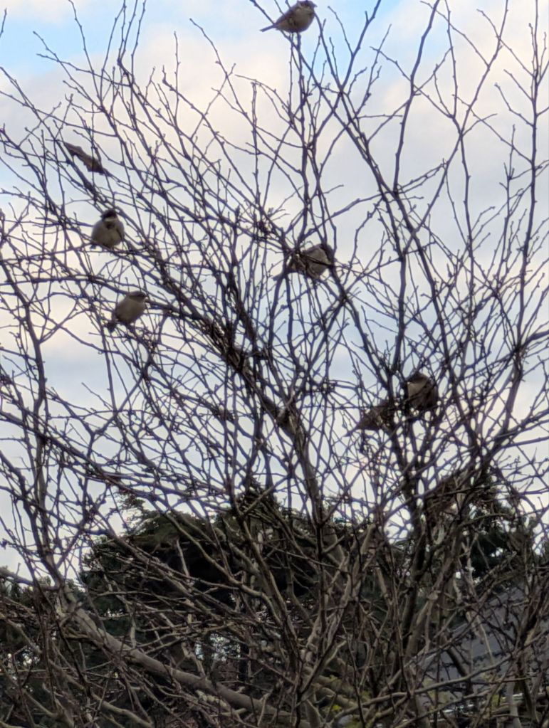 Key Sightings: Resident partridges, flowering cherry tree, 10 feral pigeons.