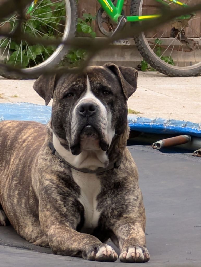 The local pitbull terrier was found in a rare moment of repose, lounging sleepily in his garden as I approached the cemetery gates.