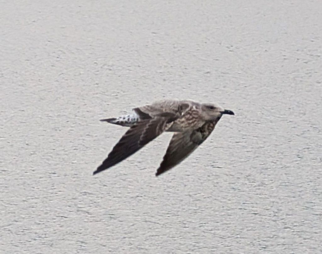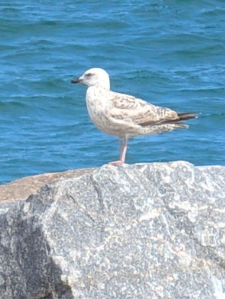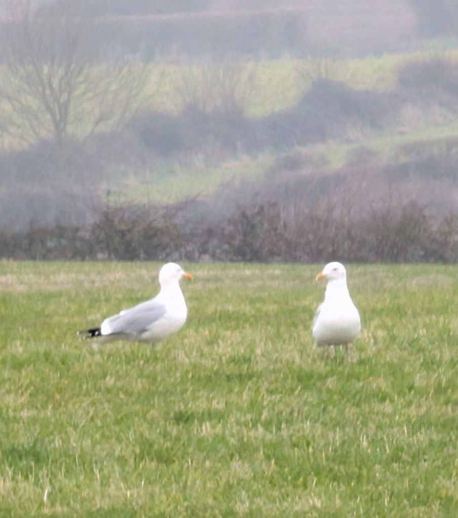 I had scattered a few crumbs of stale bread on the lawn beneath our bird feeders. A wary, solitary gull circled the garden several times before plucking up the courage to swoop down and feed on the crumbs. To my surprise, I noticed this gull was balancing and hopping around on one leg. I doubted it was actually one-legged, as I had read that sometimes gulls tuck one leg beneath their body. When this interesting gull had taken its fill, it promptly flew up to the rooftop and continued to balance on the same leg. Another gull arrived and perched nearby on two legs; my one-legged friend hopped along the roof a short distance away.