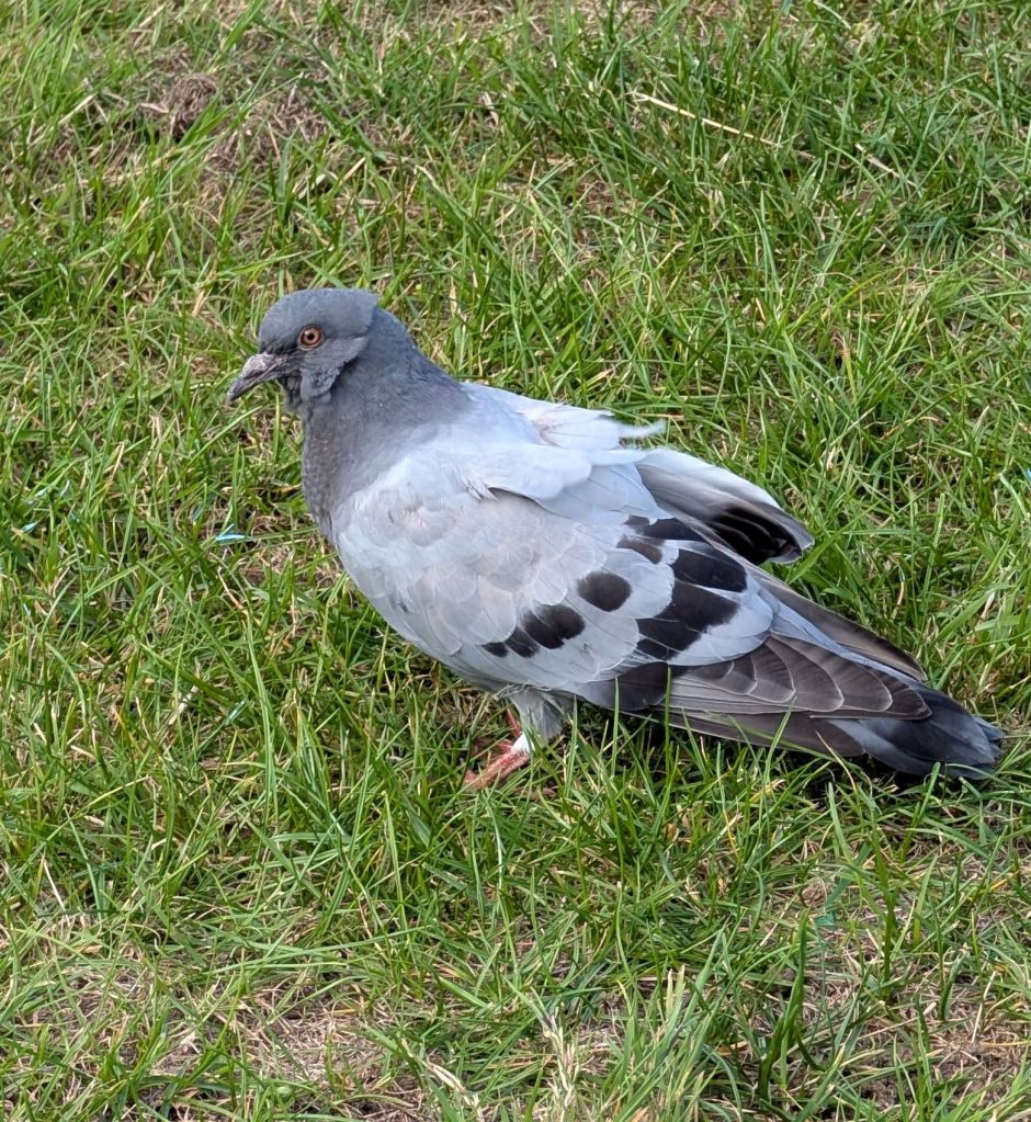 A wood pigeon, like a sentinel, was perched on a nearby rooftop as I walked towards the grassy area in Foxglove Lane.