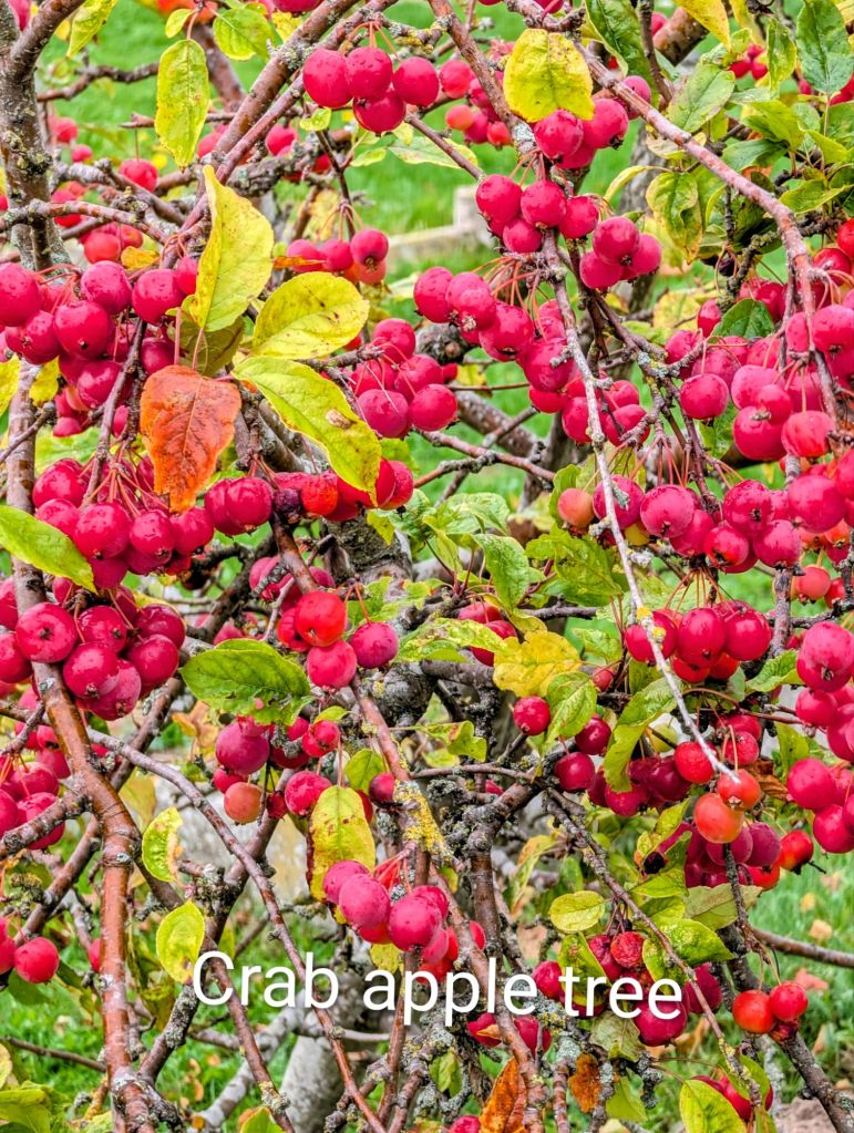I couldn’t resist taking a photograph of a magnificent crab apple tree covered with red, succulent fruit—fruit that’s almost inedible except for making crab apple jelly or jam.