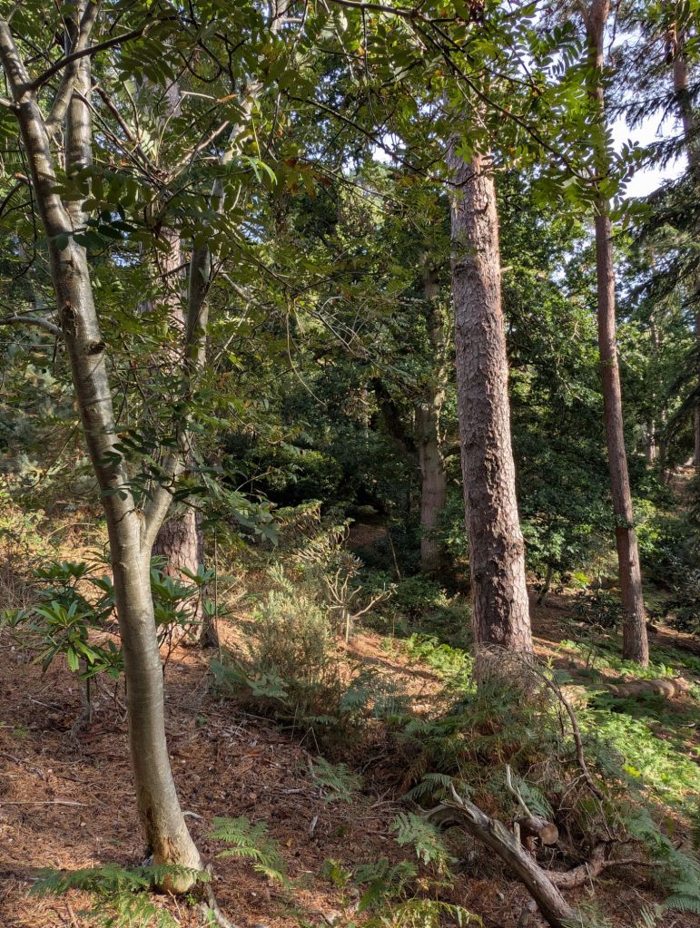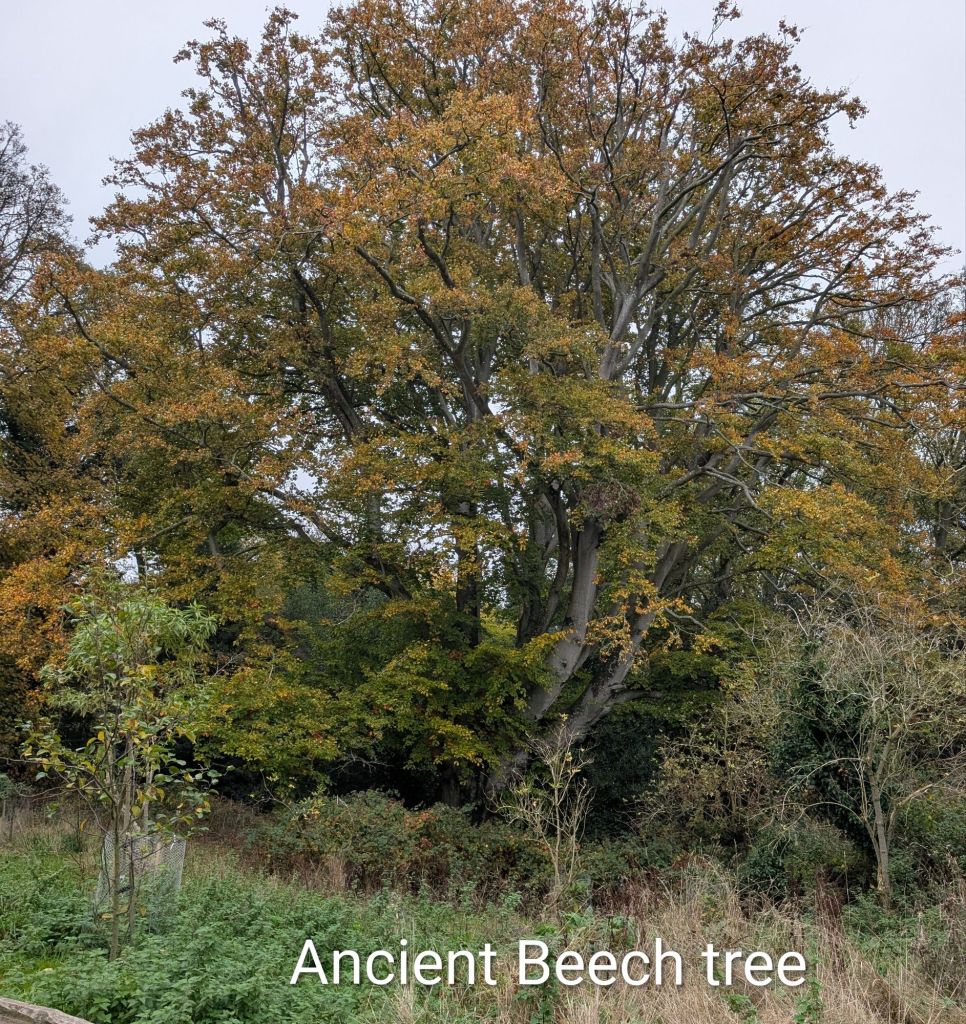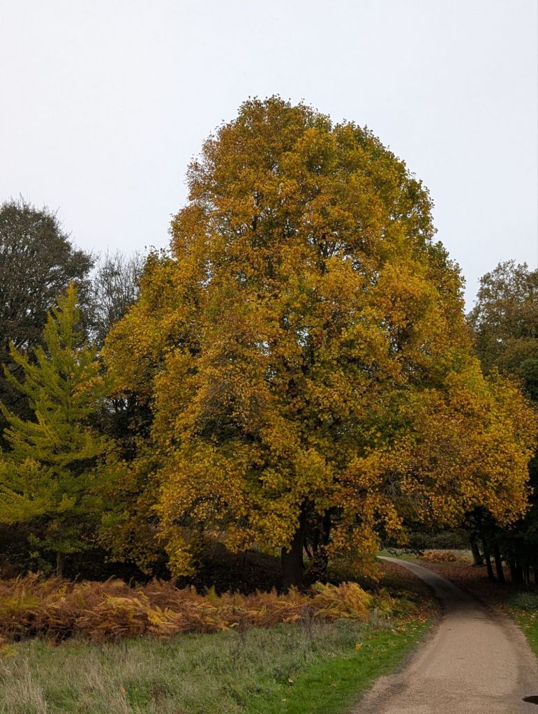 We began our walk along the beautiful Sheringham Park autumnal pathways. I noticed a robin, with its chest provocatively puffed out, perched under a hedgerow as we walked by. Quite a few different types of dogs were around, most of them on their leads. I noticed several different Labradors walking with their owners. People passed us by with spaniels, poodles, and terriers; sadly, many cross-bred dogs are hard to identify these days. I snapped a lovely photograph of my favourite ancient beech tree in Sheringham Park.