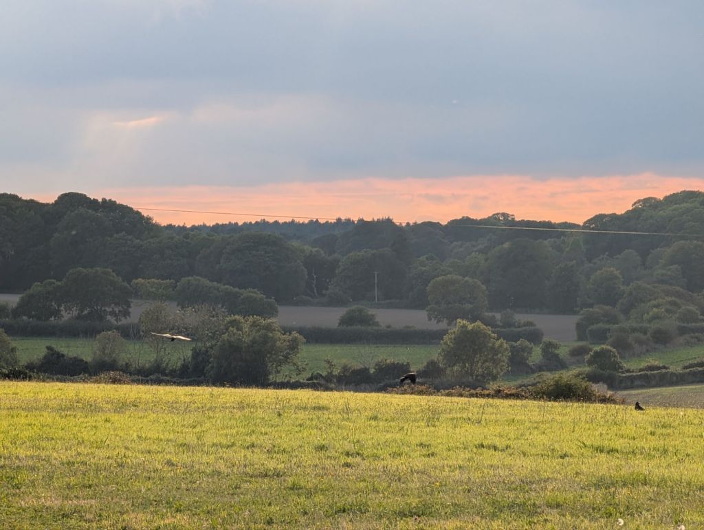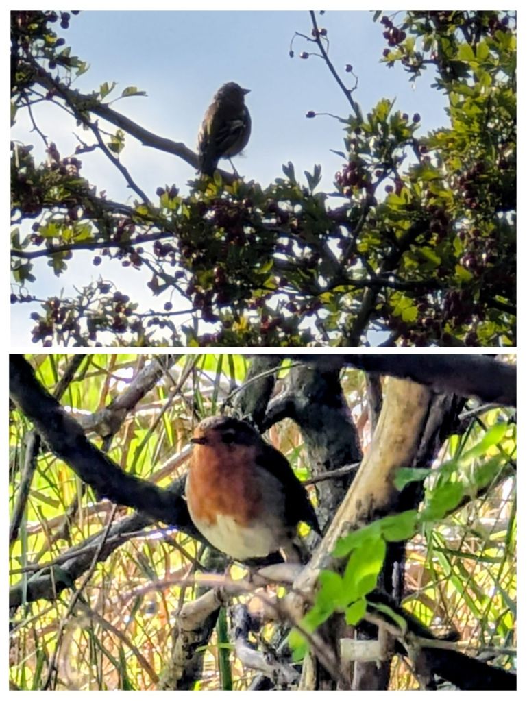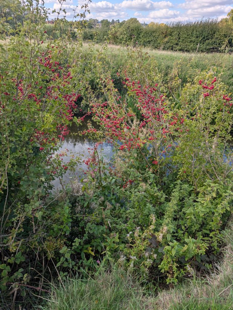 Many late autumn wild flowers were in bloom in the long grass at the side of the pathway. I photographed some yellow ragwort flowers growing alongside white yarrow and purple clover. Dazzling yellow dandelion-like plants were growing everywhere in the grass. A blackbird swiftly flew into a nearby shrub as I walked past. Two wood pigeons were feeding on the grass in the centre of the field.