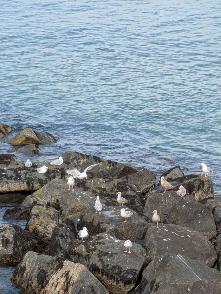 Another large, restless, herring gull drifted overhead, obviously patrolling the area searching for food or territorial intruders.
