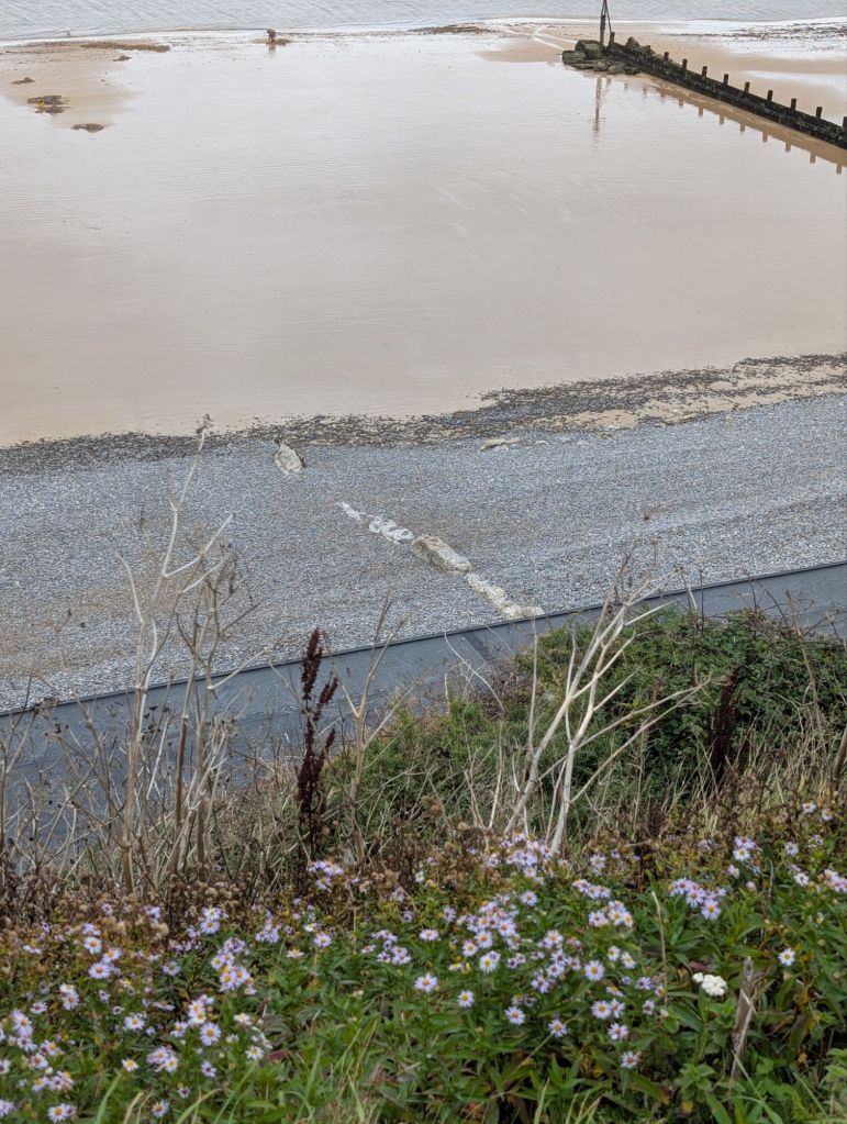 I followed the pathway to the clifftop on the way to Corton, where I took some excellent photographs of the wild, white-topped waves crashing into the rocks on the sandy shore.